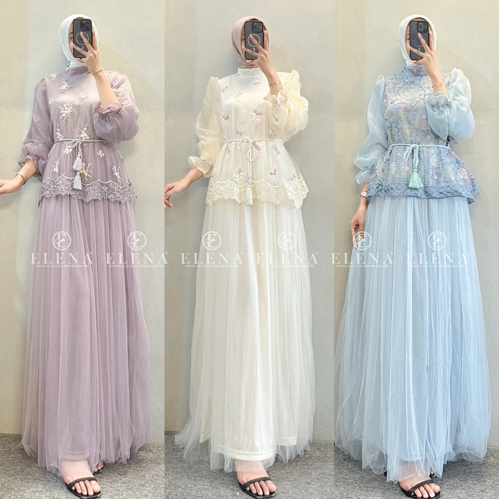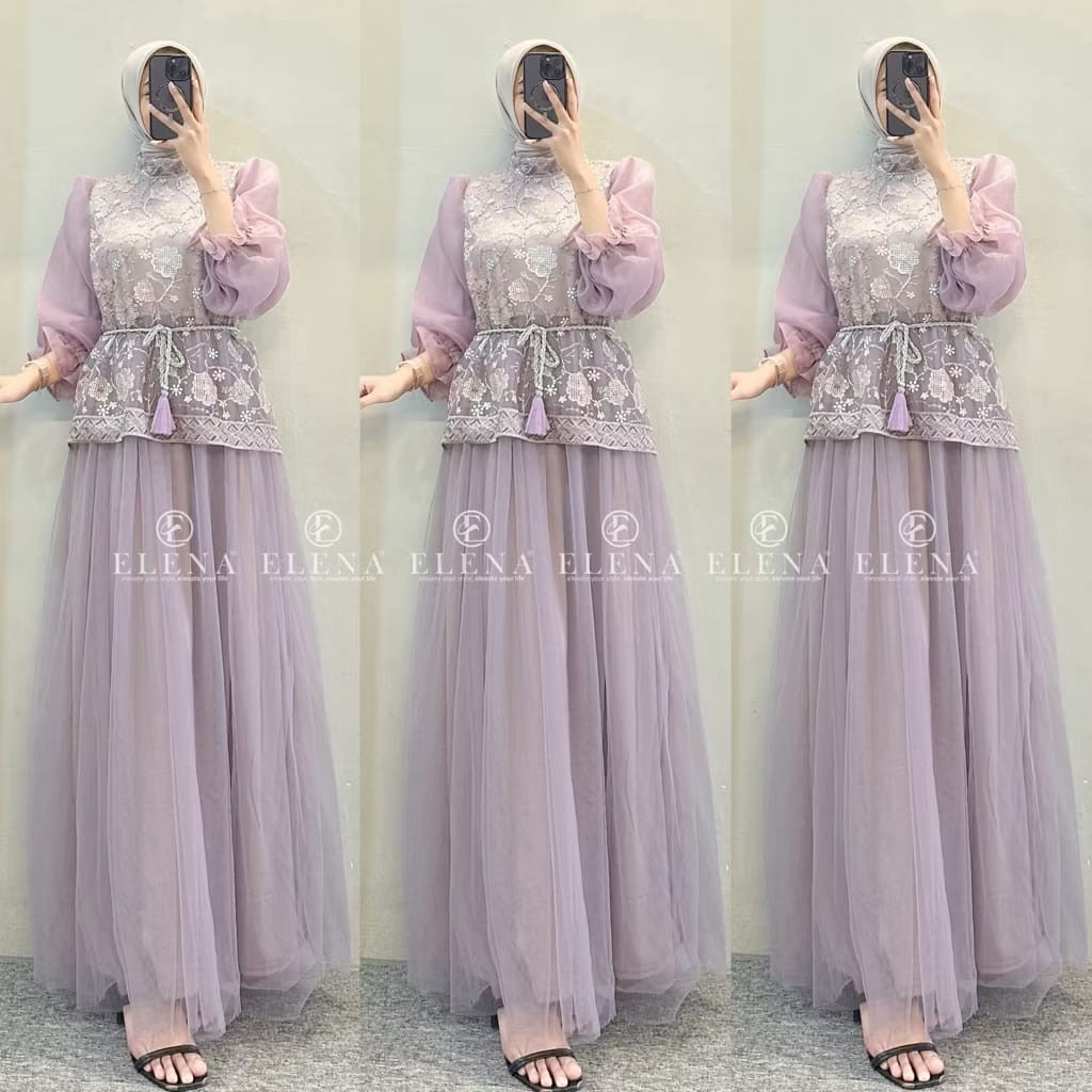 ELENA-Saufi dress brukat premium lengan organza | dress brokat kondangan wanita kekinian model terbaru dress wisuda lama