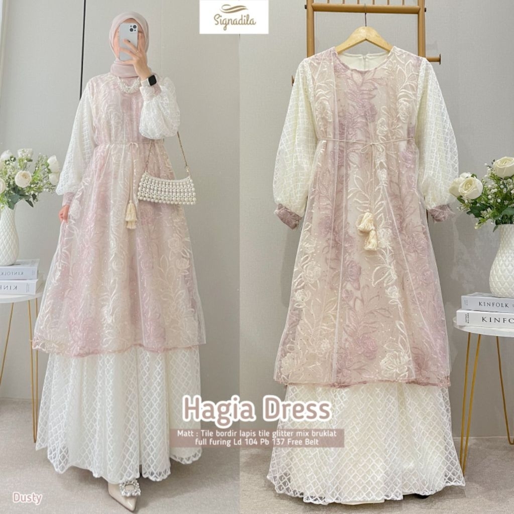 HAGIA DRESS GAMIS TILLE BRUKLAT GAMIS BRUKLAT TILE TEBAL SUPER PREMIUM FREE IKAT PINGGANG PREMIUM KANCING GAMIS TILLE WH