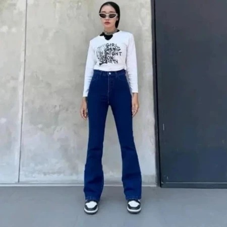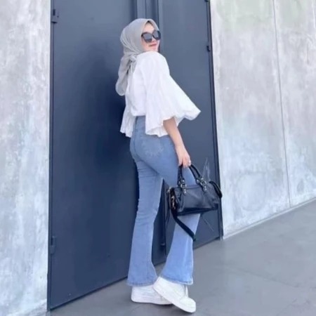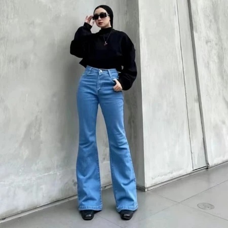 Highwaist Cutbray Jeans Wanita Denim Premium