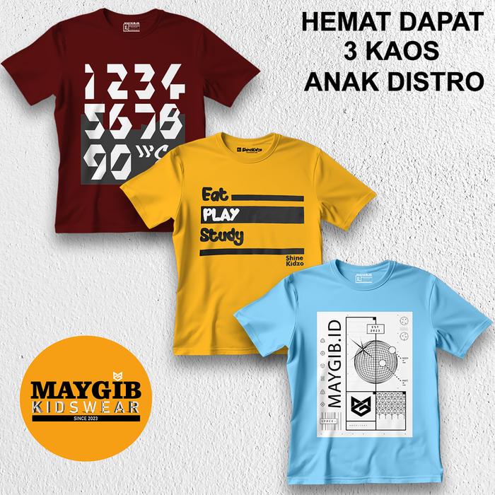PAKET 3 PCS KAOS ANAK DISTRO COMBED 30S SABLON FLATISOL FASHION MOTIF ATASAN KIDS - PAKET A, M 3-4 TAHUN