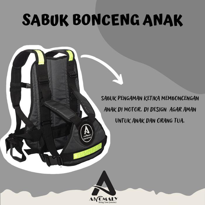 SABUK BONCENGAN ANAK NAIK MOTOR MULTIFUNGSI ABU ABU - HITAM
