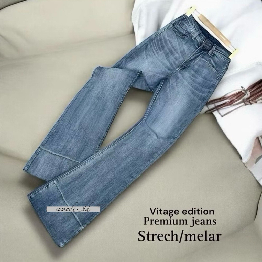 Jennie Highwaist Cutbray Jeans d Celana Flare Panjang Stretch Wanita Retro Vintage Lipat Bawah