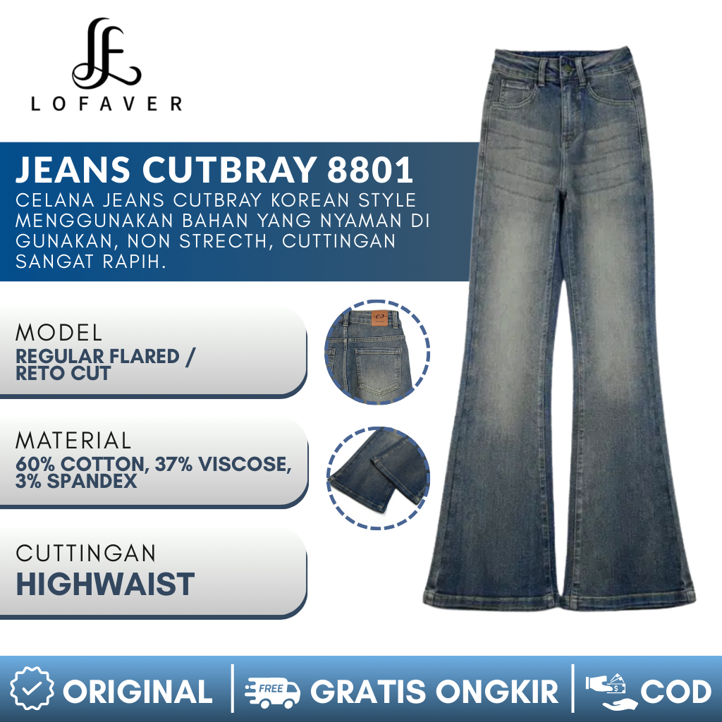 Lofaver - Ultra Highwaist Cutbray Stretch Jeans 8801 HANGOUT Celana Panjang Wanita