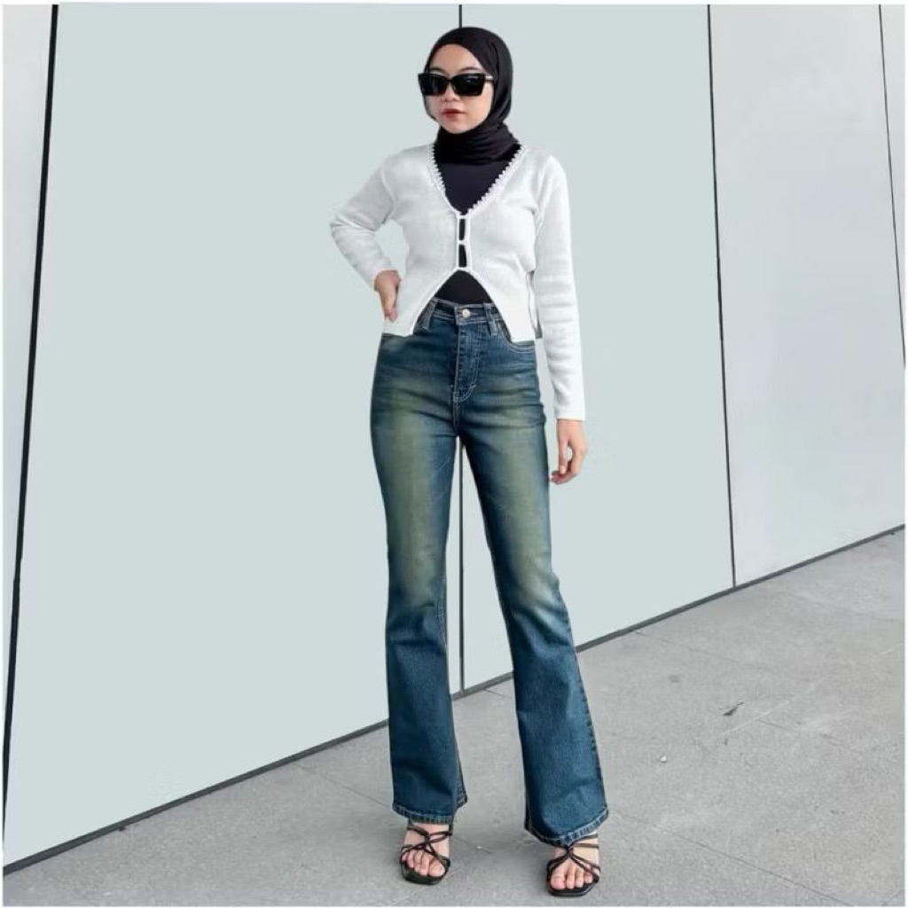 Highwaist Cutbray Jeans Retro 114 - Celana Jeans Cutbray Wanita Highwaist Cutbray Stretch Premium