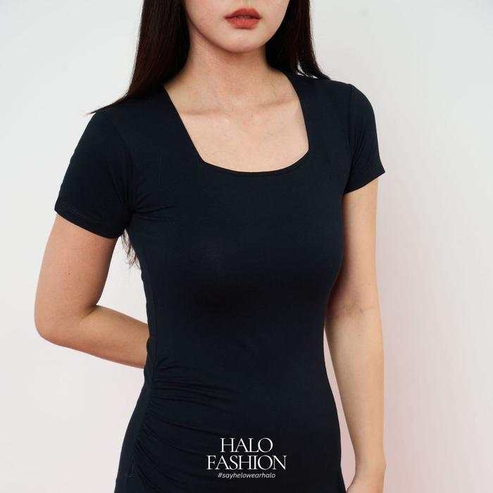 HALOFASHION MOZA SEXY BODYCON SIMPLE DRESS MINI DRESS BASIC DRESS KOREAN FASHION BAJU WANITA GAUN CASUAL - BLACK, S