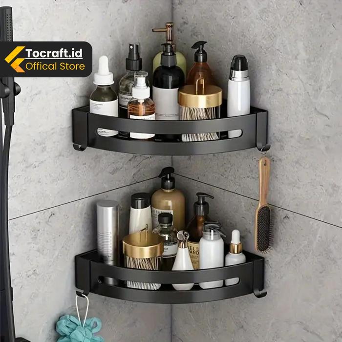 TCID RAK SUDUT TET TEMPAT SABUN TEMPEL DINDING KAMAR MANDI HITAM - HITAM A