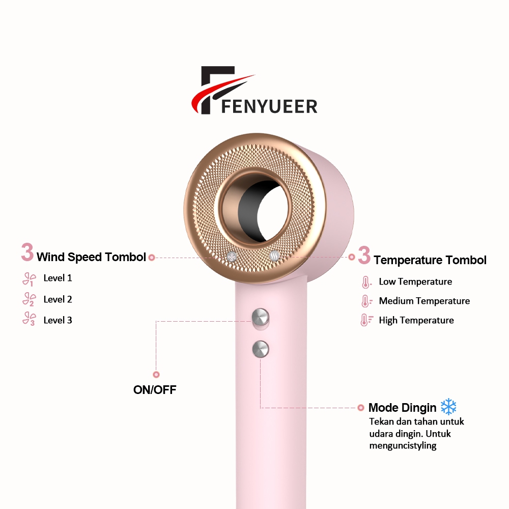 Fenyueer 1400W Hot & Cold High Speed Hair Dryer Dengan Teknologi Plasma Ion Negatif Rambut Halus