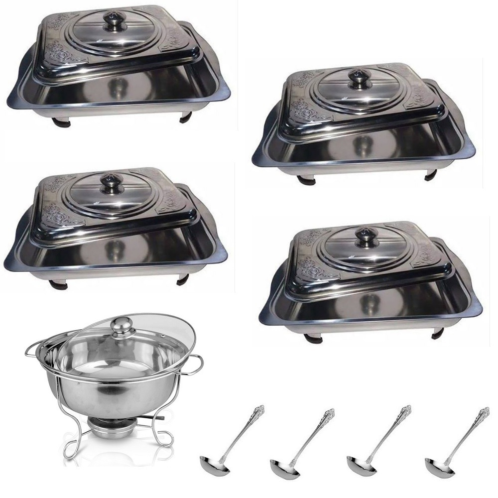 Paket Prasmanan Set 5 In 1 - Panci Penghangat + 4 Set Nampan Saji + 4 Pcs Sendok Sayur