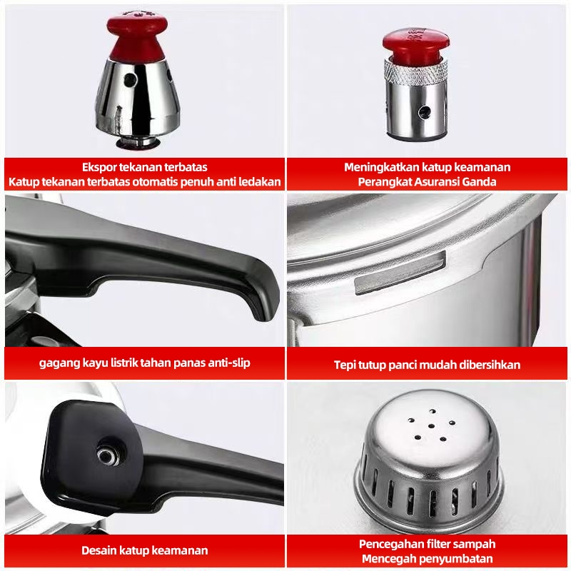 Presto/Panci Presto/Panci Tekan Alumunium Serbaguna Anti Lengket Pressure Cooker 8L 10L 12L