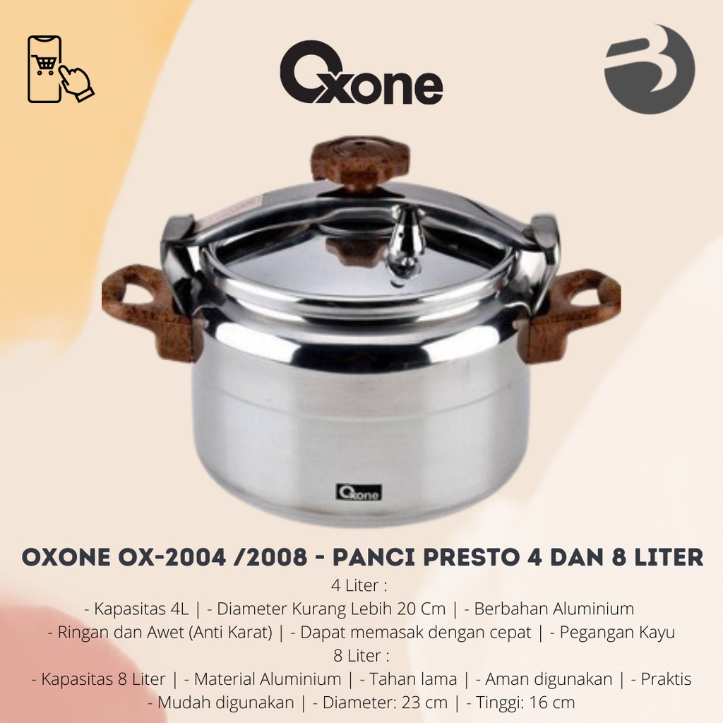 Oxone Ox-2004 /2008 Aluminium Pressure Cooker - Panci Presto 4 Dan 8 Liter