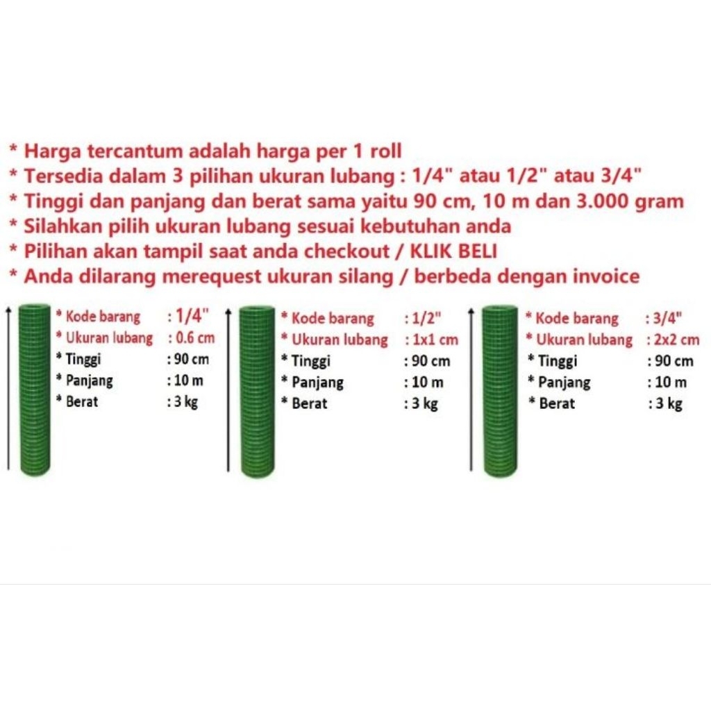 Kawat Loket PVC RAM HIJAU/Kawat Kandang Ayam/Ayakan Pasir 1 Rol 10Meter