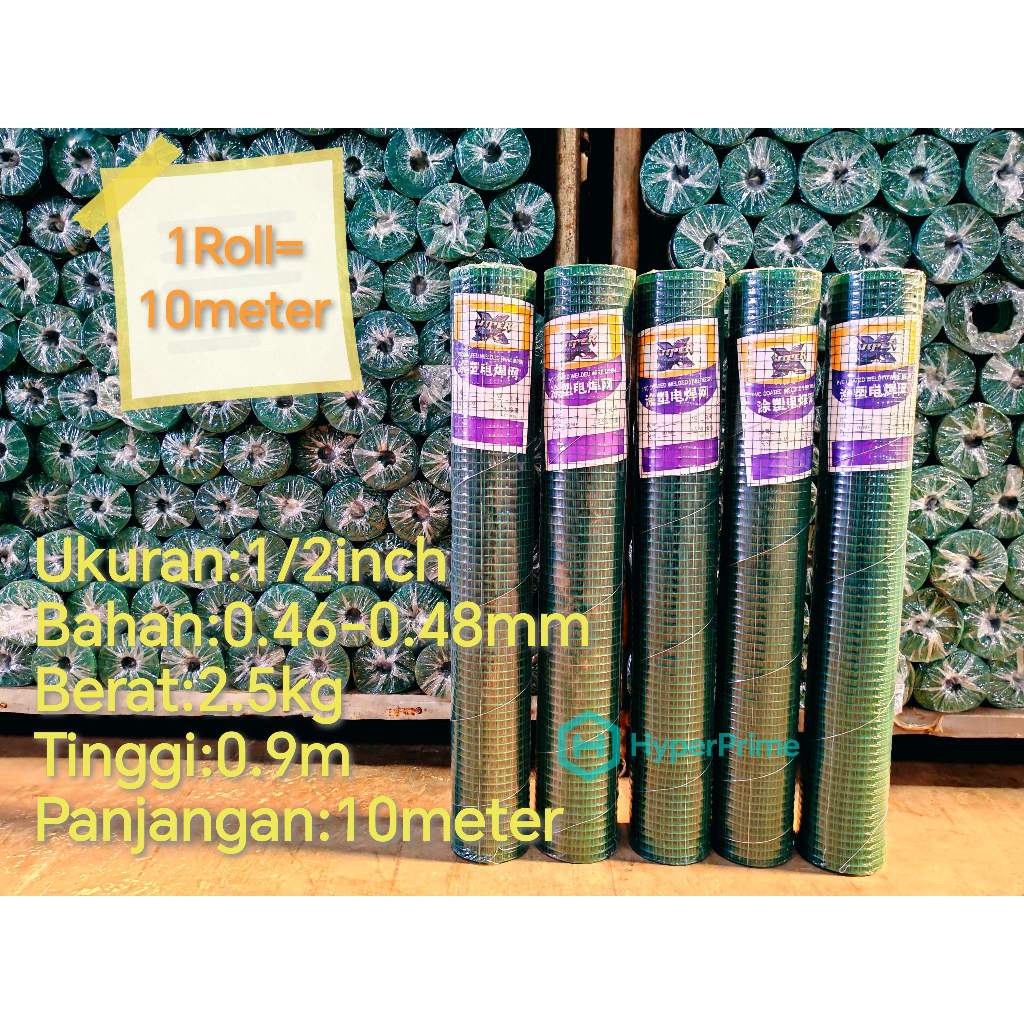 Kawat Loket PVC Ram Hijau Viper Ungu Spesial 1/2inch Kawat Kandang Hewan Ayakan Pasir 10meter- 1 rol
