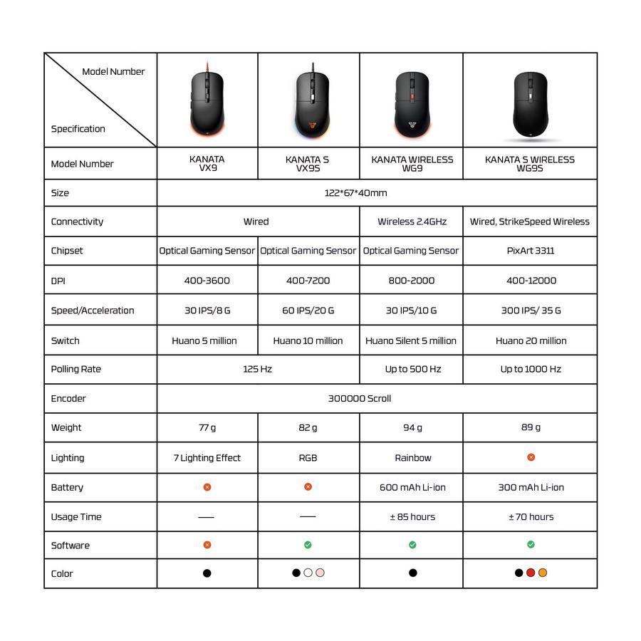 Fantech Kanata Wg9 / Wg9S Mouse Gaming Wireless Dual Connection Pixart 3311 12000 Dpi 1000Hz