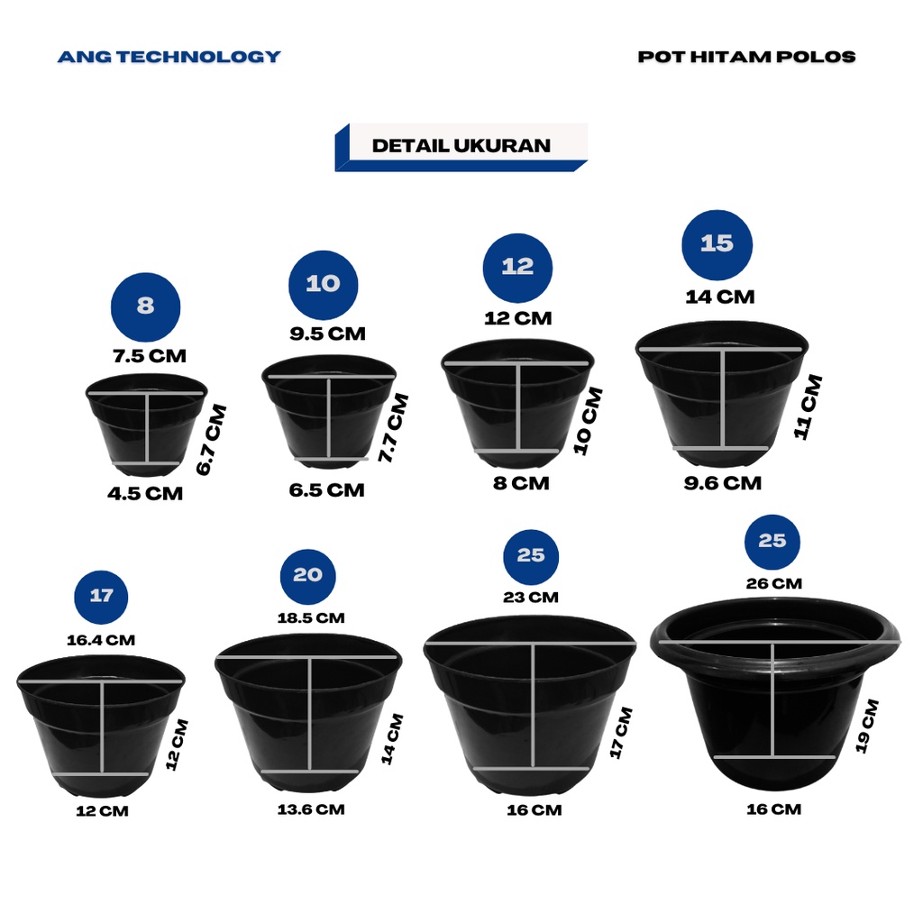 Pot Bunga ANG Hitam 20 cm 15 cm 17 cm Termurah Se-Indonesia