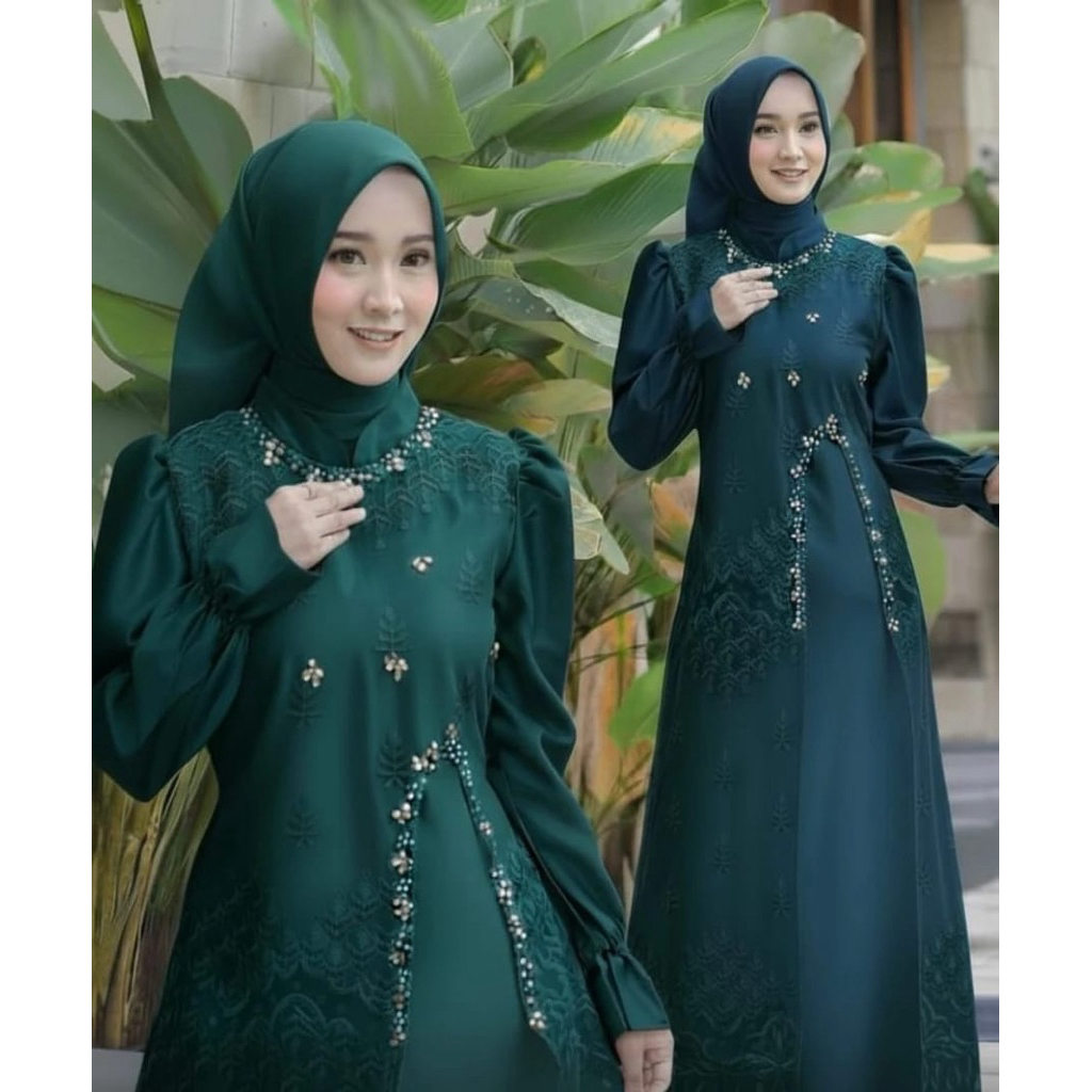 Marsya Dress Silk Brukat Payet Mutiara Premium Gamis Pesta Lebaran Kondangan Mewah