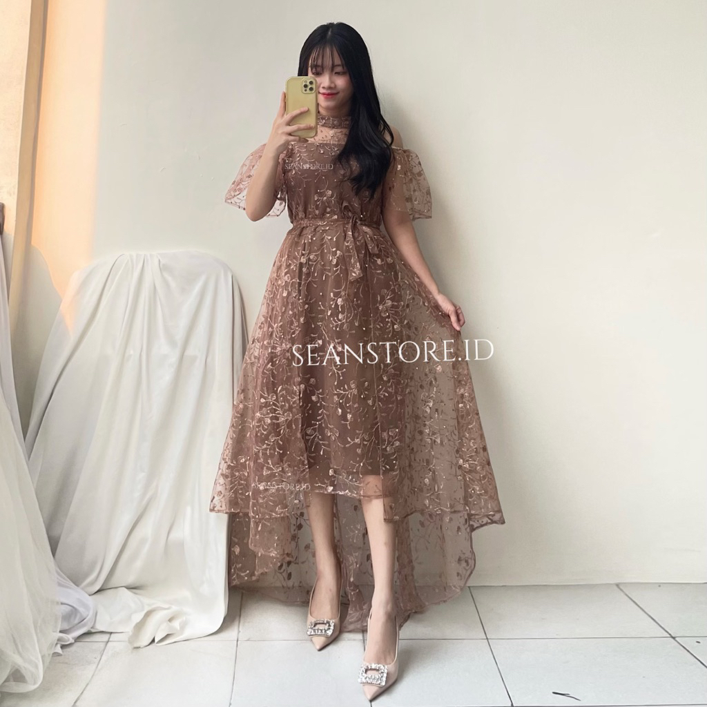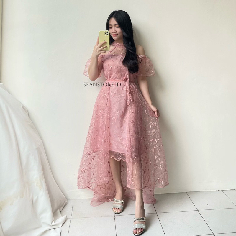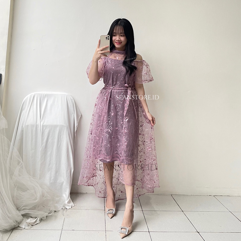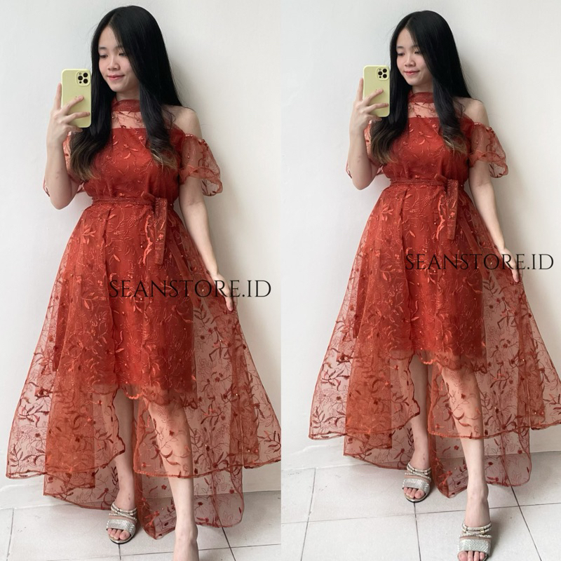 Glowy Dress Sabrina Wanita Elegant Anggun | Dress Bridesmaid Prewedding Pesta kondangan Imlek Dress Gereja Natal Terbaru