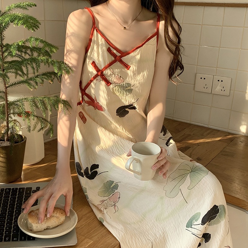 Eun Hee Dress Daster Tidur Wanita Tanpa Lengan Motif Bunga Lembut Dengan Cup Bra Premium Nyaman Cantik