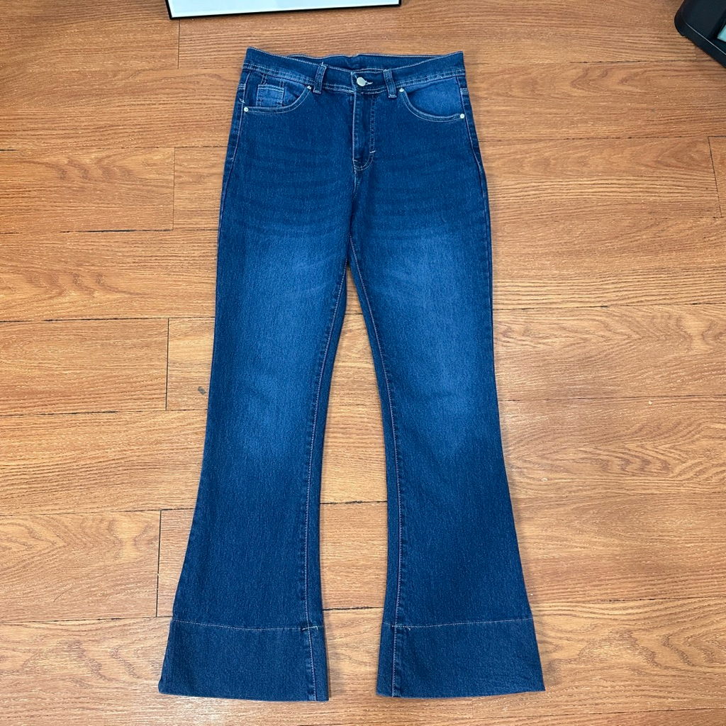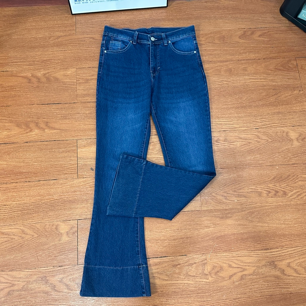Jennie Cutbray Jeans Highwaist Retro Lipatan Kaki Besar Jeans Stretch Wanita