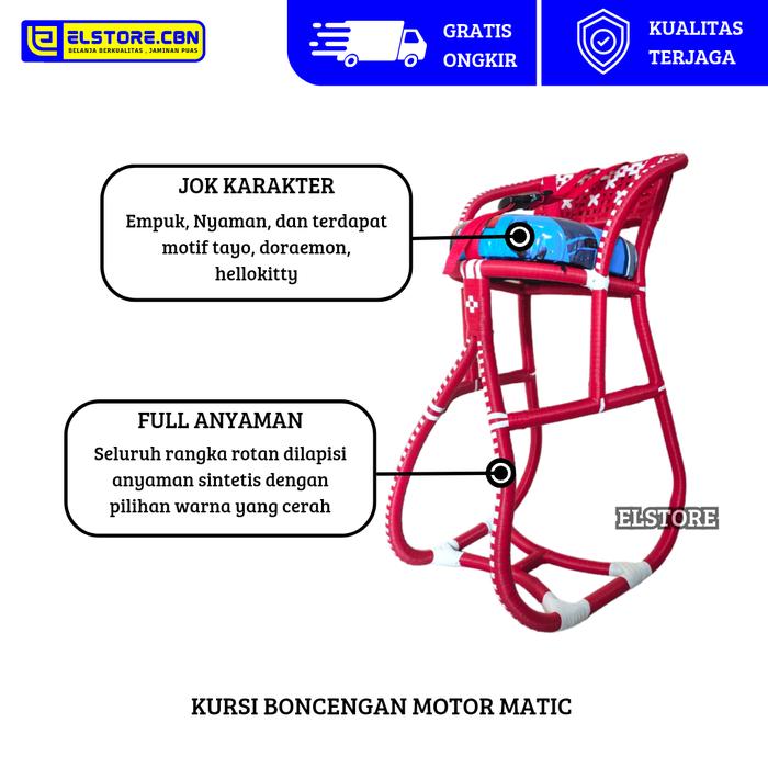 KURSI BONCENGAN ANAK MOTOR MATIC ROTAN FULL ANYAMAN - PINK, TANPA BANTAL