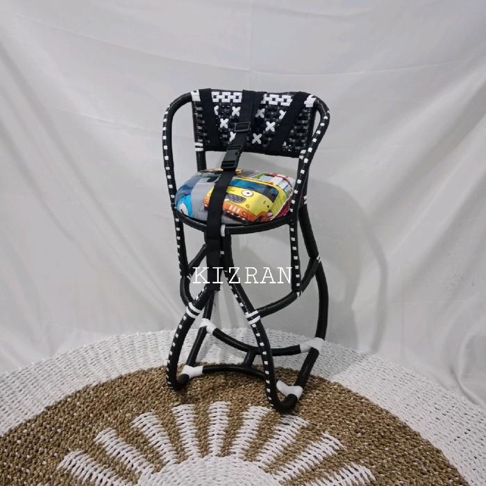 KURSI BONCENG ANAK FULL ANYAM PLUS SABUK JOK MOTOR MATIC / BANGKU ROTAN ANYAMAN SINTETIS METIK / TEMPAT DUDUK BAYI BALITA - FULL HITAM, TANPA BANTAL
