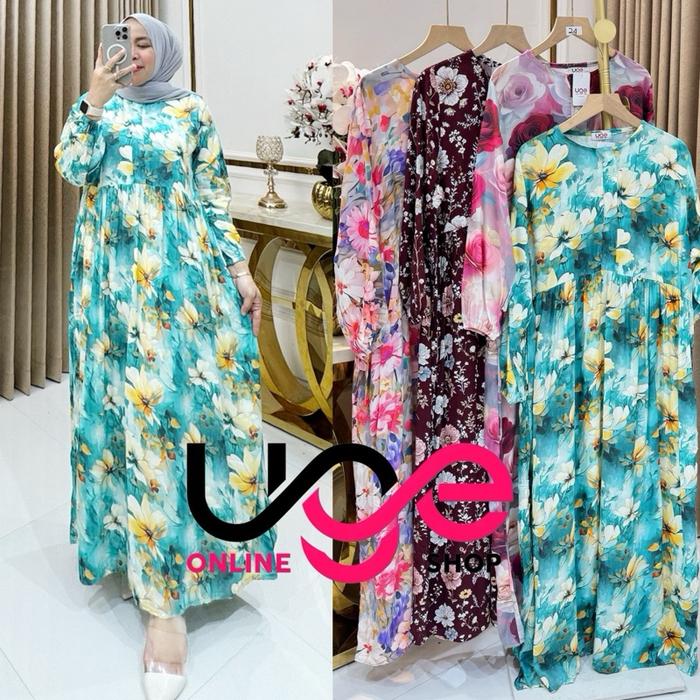 MIDI DRESS FLOWER BUSUI FRENDLY SANTAI A-LINE BUNGA CANTIK MOTIF NYAMAN RAYON VISCOSE MENYUSUI MUSLIM ZIPPER - SHANIA, MIDI DRESS SAJA