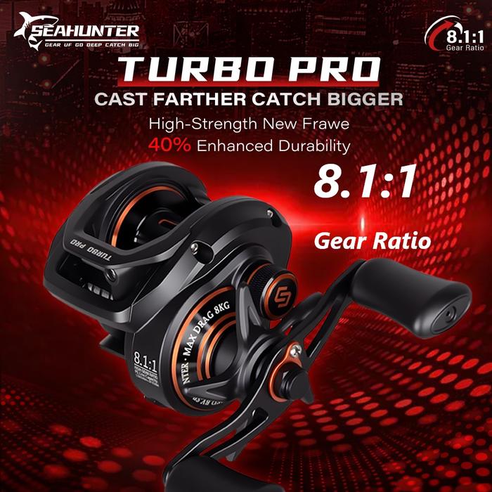 SeaHunter Turbo Pro 8.1:1 Gear Ratio Reel Pancing Baitcasting, 8kg Max Drag, 5+1 BB, 10-level