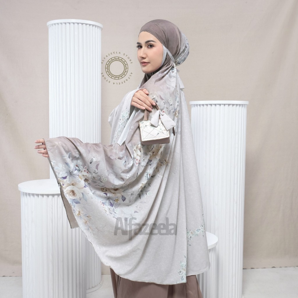 Alfazeela - Mukena Mini Parasut Premium Korea 2in1 Travel Motif Ibu Kost Tas Tote Mukena Tya Ariestya