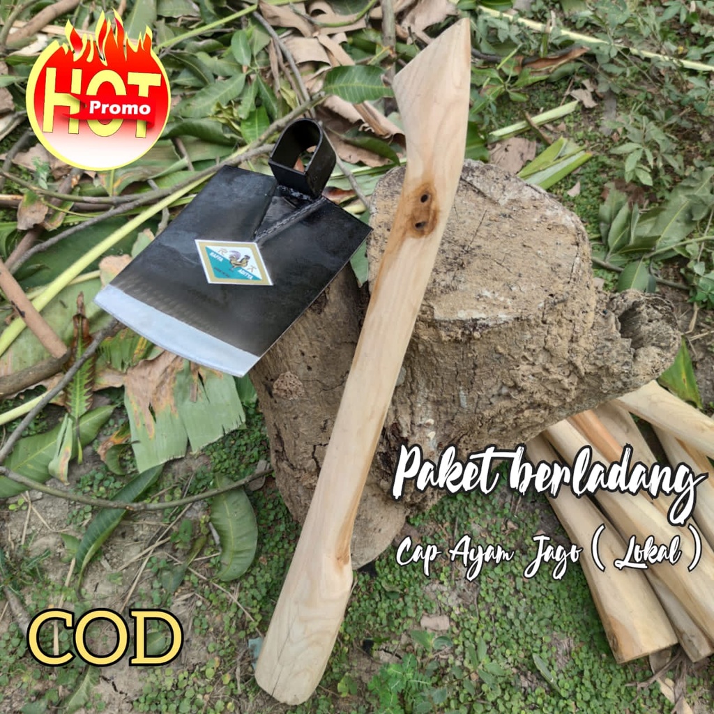 ( Sepaket) Cangkul Cap Ayam Jago Lokal Dan Gagang - Cangkul Pacul Anti Lengket - Doran Cangkul