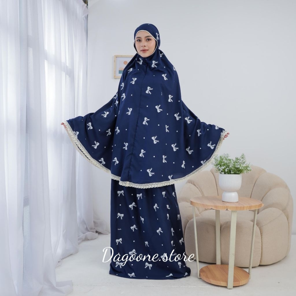 DAGOONE - Mukena Travelling Dewasa Motif Printing Ribbon 2 in 1 Free Tas Pouch