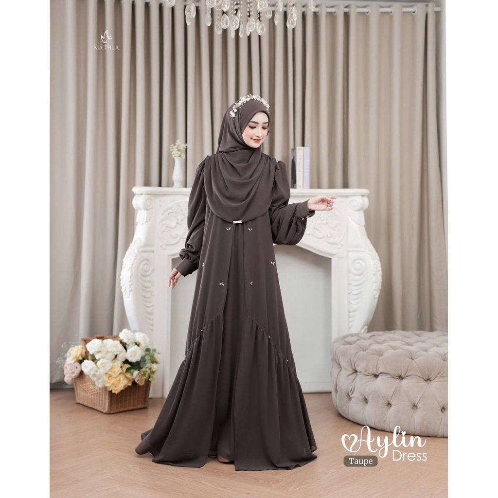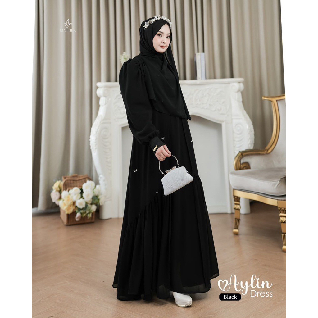 Aylin Abaya Dress Wanita Ceruty Babydoll Mix Payet Laura Gamis Lebaran Terbaru 2026 Elegan Muslimah