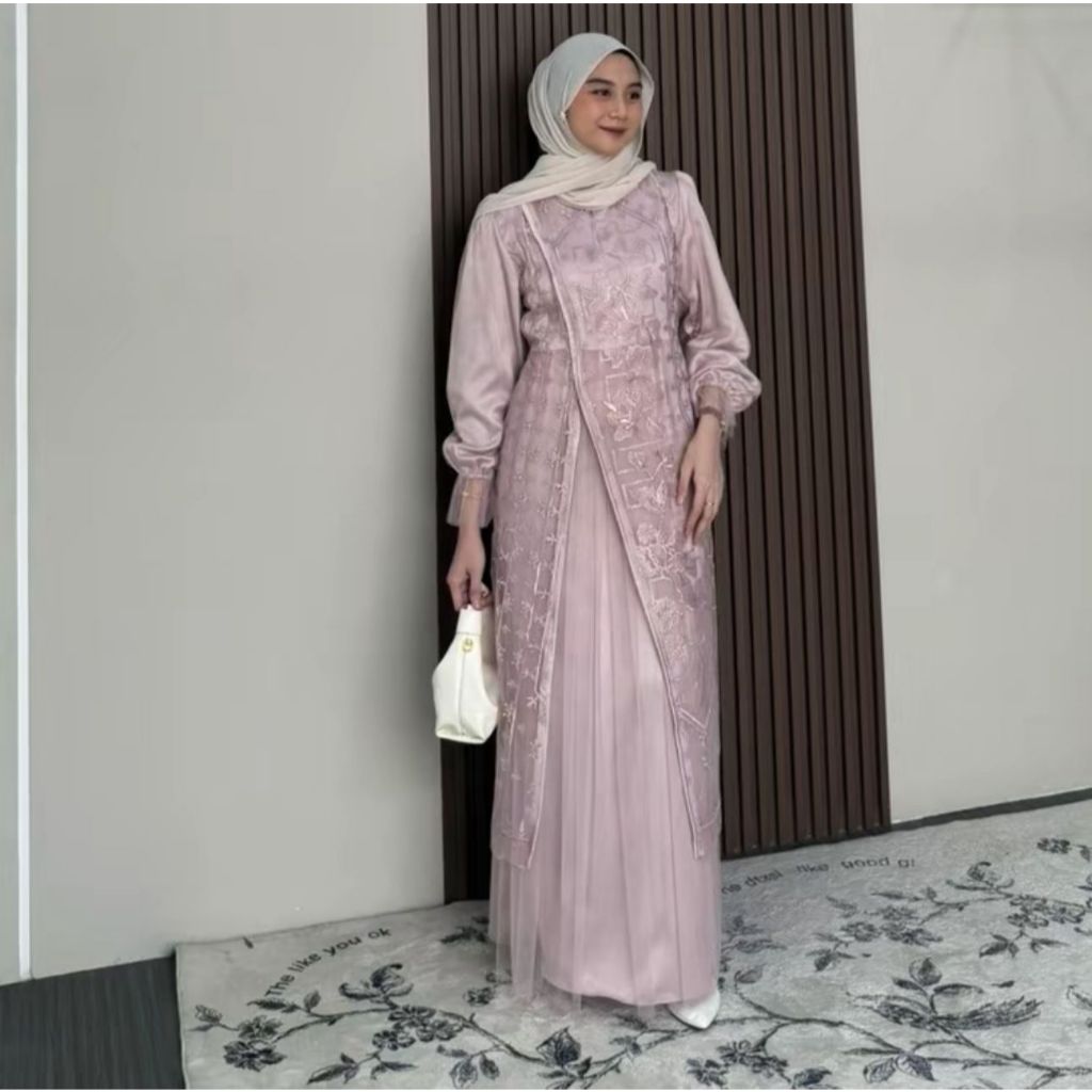 Kimar Dress Kondangan Mix Tile Premium Dress Burgundy Terbaru Wanita Mewah Elegan Gamis Silk Roberto