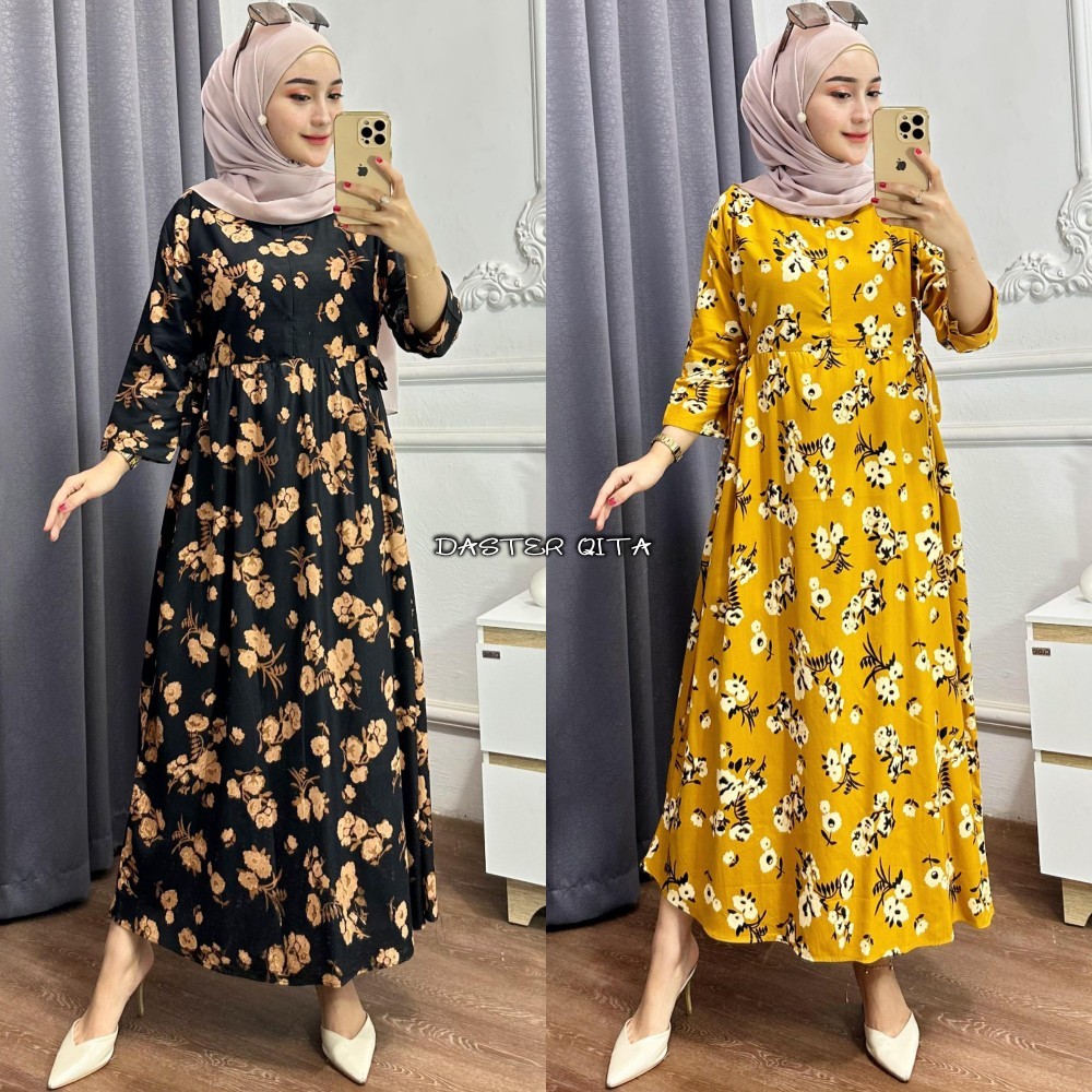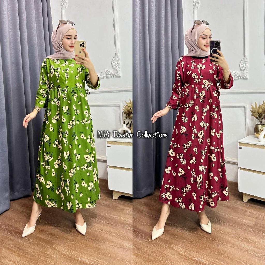 PAKET BUNDLING 110 RIBU DAPAT 2 PCS Midi Dress Miranda Jumbo Lengan 3/4 Daster Gamis Muslim Panjang Busui Friendly Bumil