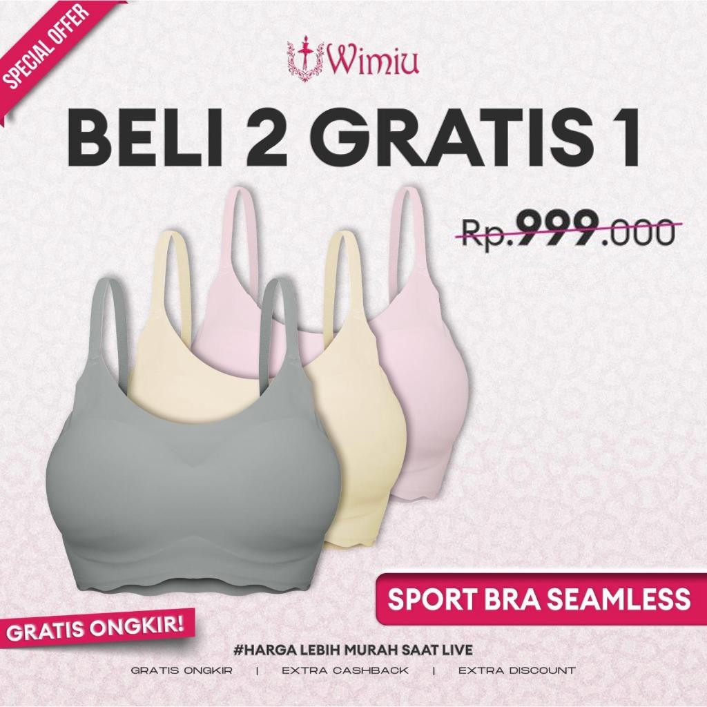 WIMIU PAKET HEMAT 2 GRATIS 1 BH Seamless Sport Bra Seamless Bra BH Sport Wanita Bra Wanita Tanpa Kait 100063 Busamless B