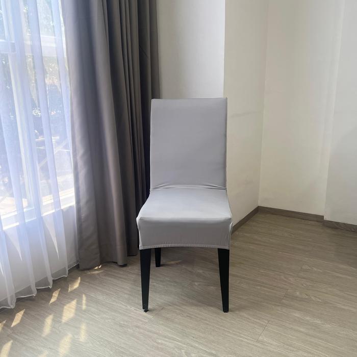 SARUNG KURSI MAKAN LOS COVER KURSI ELASTIS BAHAN LYESTER LEMBUT HALUS - SILVER, SIZE M