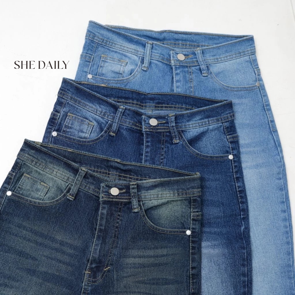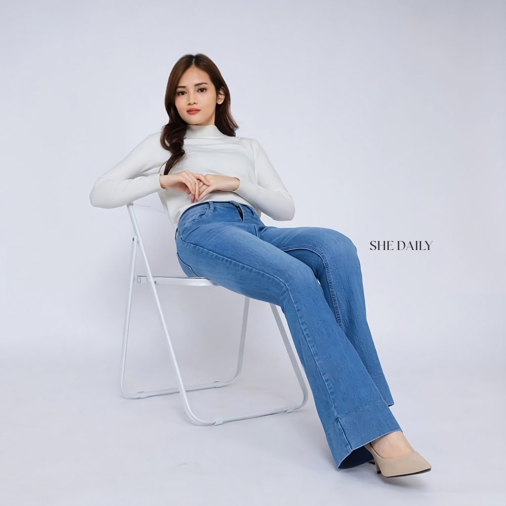 SHE DAILY - Jennie Cutbray Jeans Higwaist Lipat besar Jeans Strech Kekinian Wanita Tinggi Terbaru