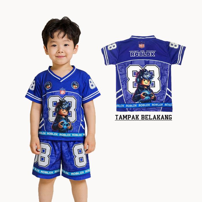 SETELAN JERSEY ANAK LAKI -LAKI DAN PEREMPUAN USIA 1-10 TAHUN FULL PRINTING SUBLIM BAHAN DRYFIT MILANO TANGAN PENDEK/SETELAN ROBLOX/SETELAN JERSEY/SETELAN ANGKA - NAVI ROBLOX 33, M