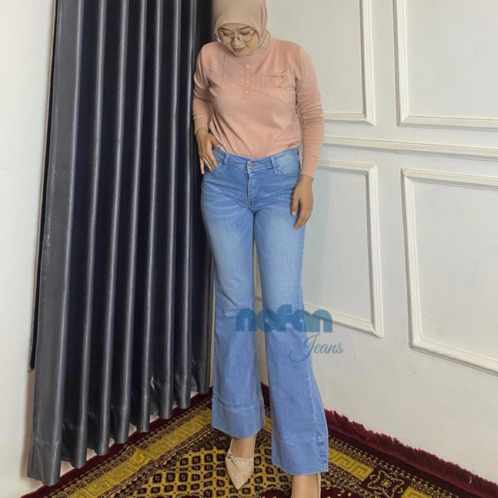 NOFAN Jeans - Celana Jeans Cutbray Whisker Lipat Highwaist Wanita Panjang Premium Quality