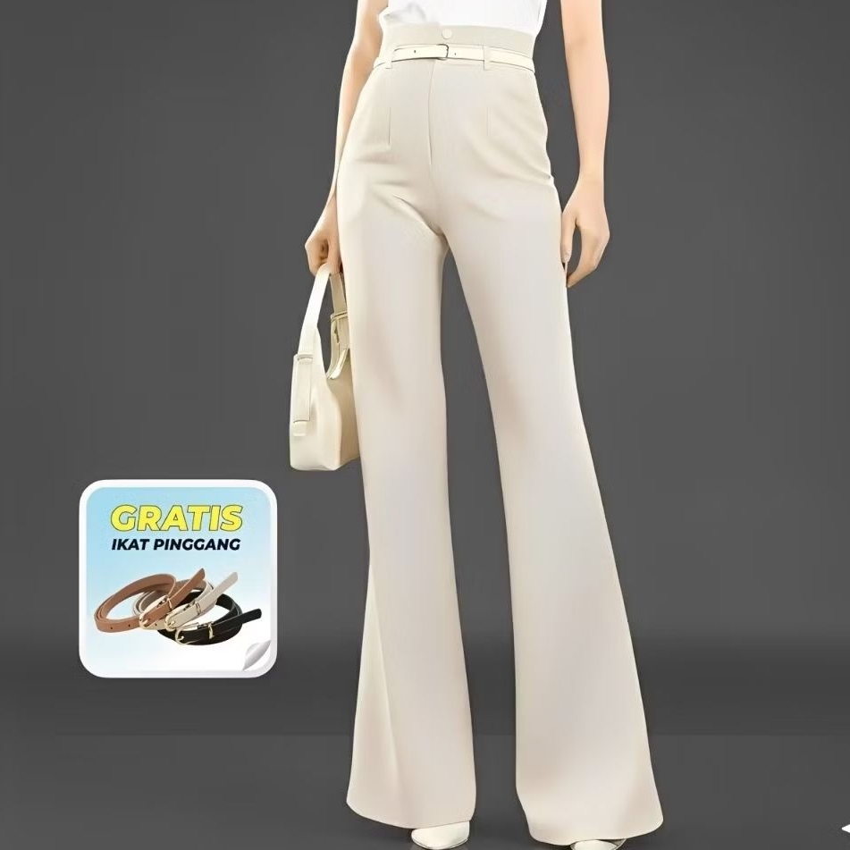 [ Kaia ] Velora Celana Formal & Casual Cutbray Highwaist Bonus "Ikat Pinggang"