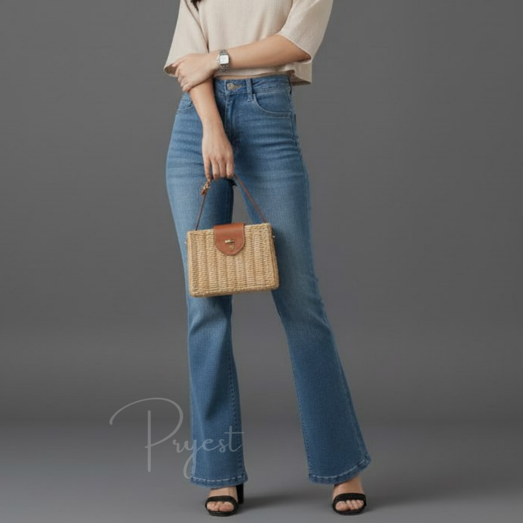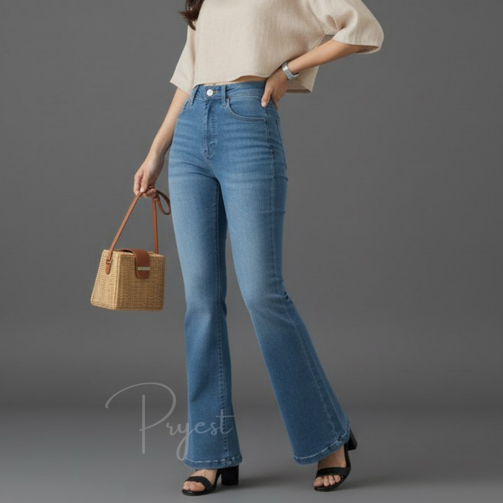 PRYEST FOR FEMME - Celana Jeans Cutbray Panjang Wanita Premium Blue Retro