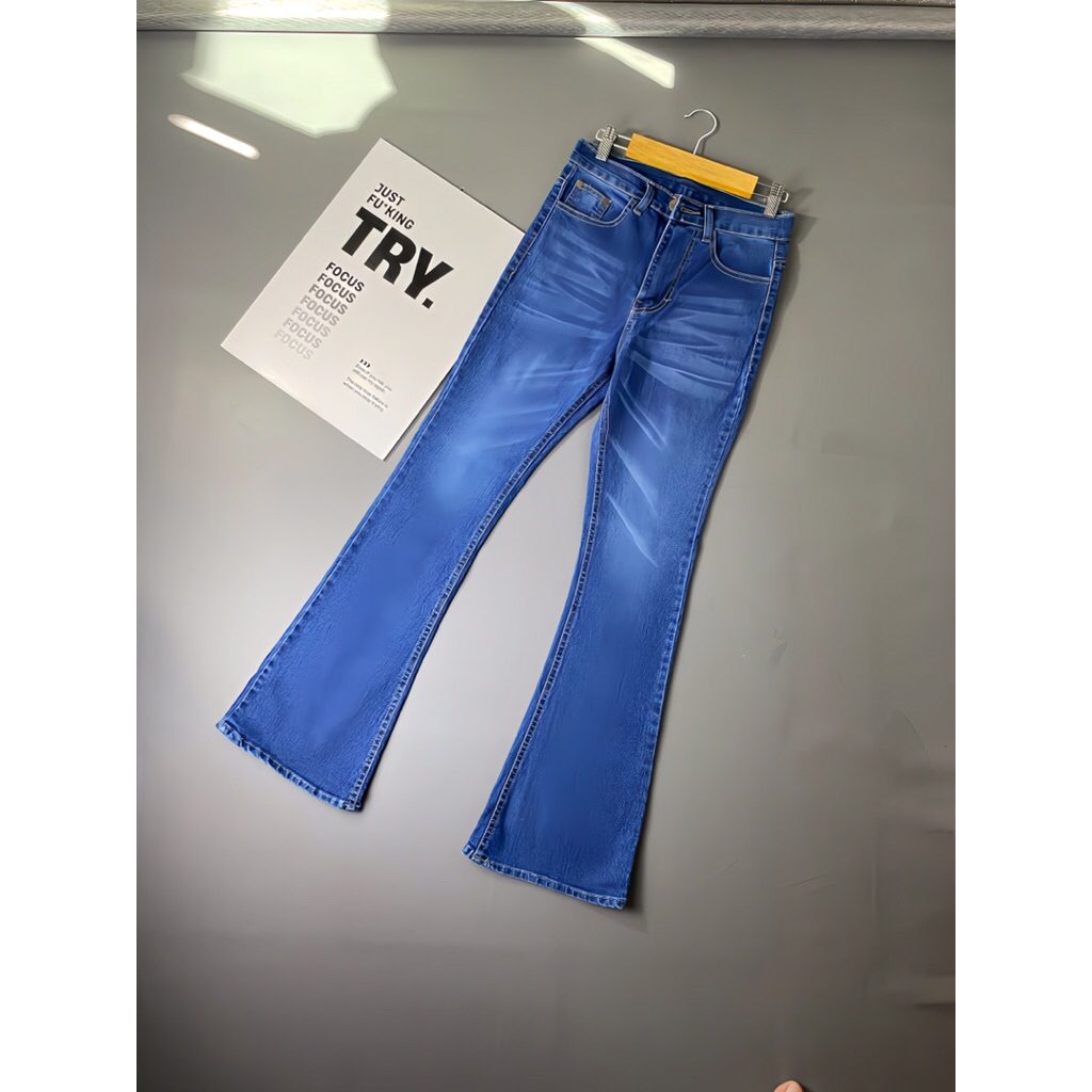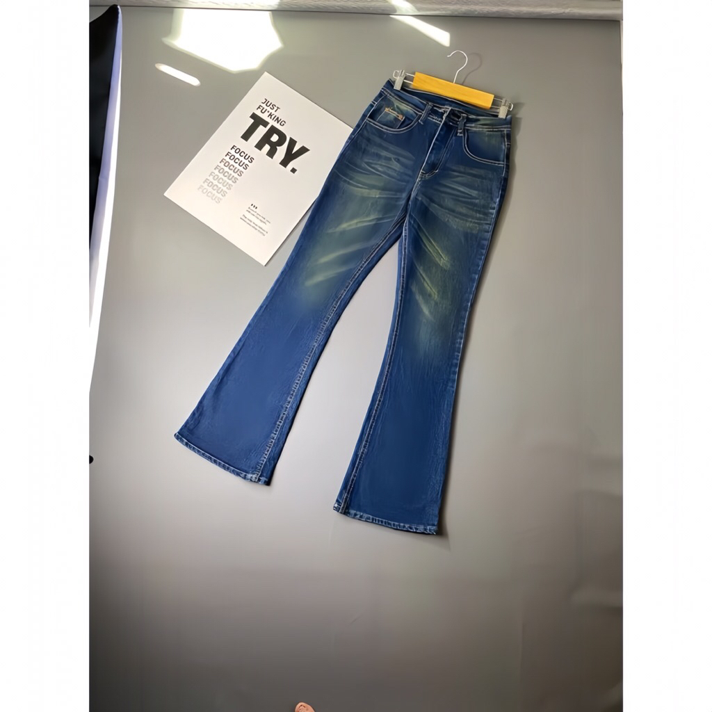 Hightwaist Jeans Cutbray Whisker | Celana Cutbray Jeans Wanita Whisker Wash