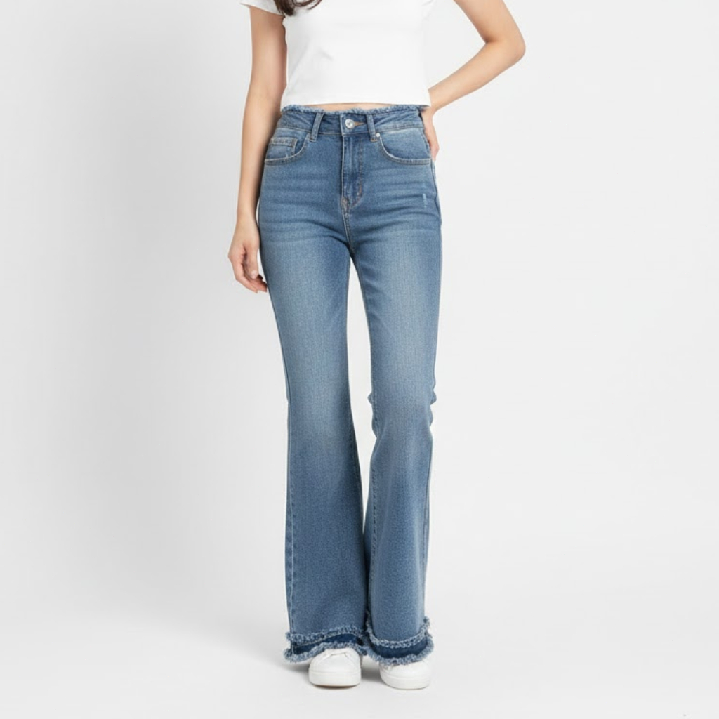 Lofaver - Highwaist Stretch Cutbray 8808 Pocket Jeans Hangout Celana Panjang Wanita Korean Style