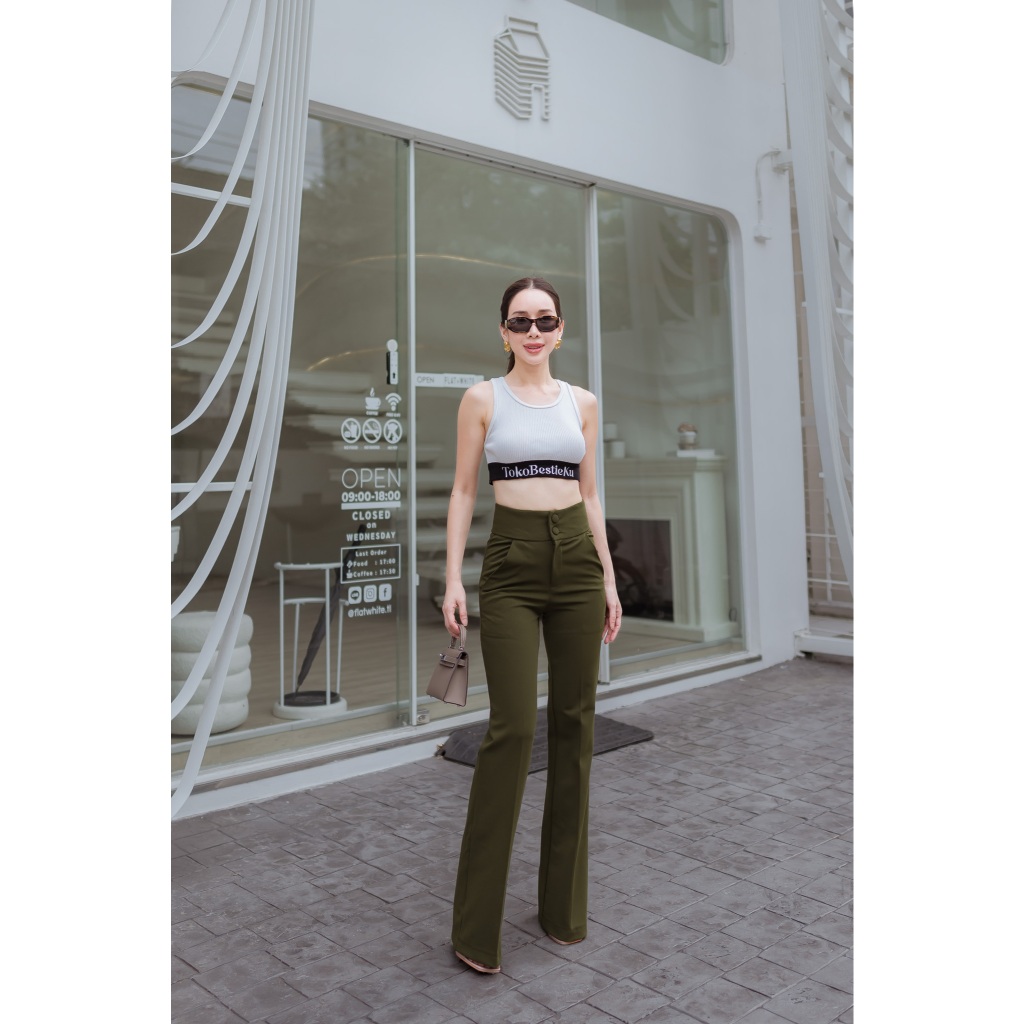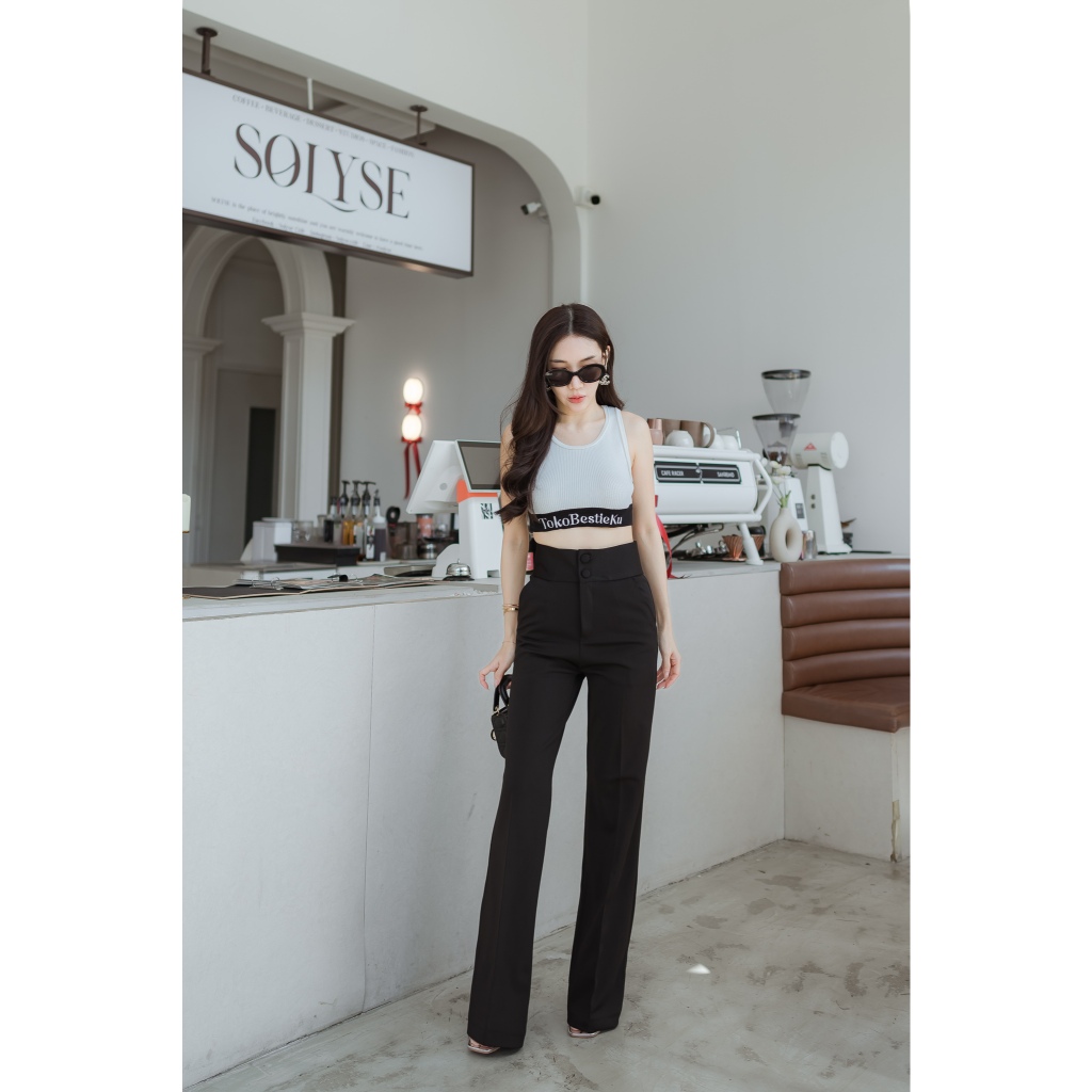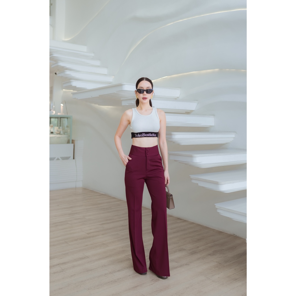 TokoBestieKu Esme Celana Cutbray Polos Premium Original Bangkok High Waist Flare Pants Import