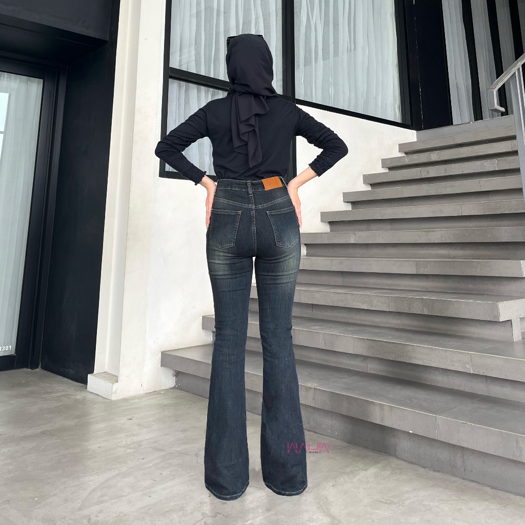 WAUW - Highwaist Cutbray Stretch Jeans 2442 Retro Navy CRUSH
