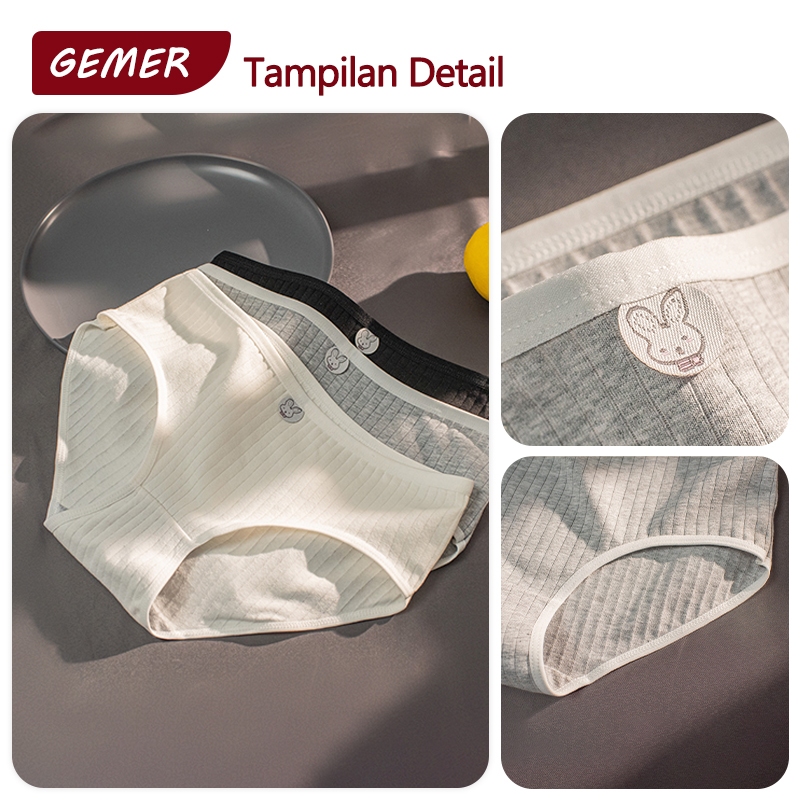 GEMER (3 Pcs) Celana Dalam Wanita Fashion Underwear Katun CD Bernapas Nyaman