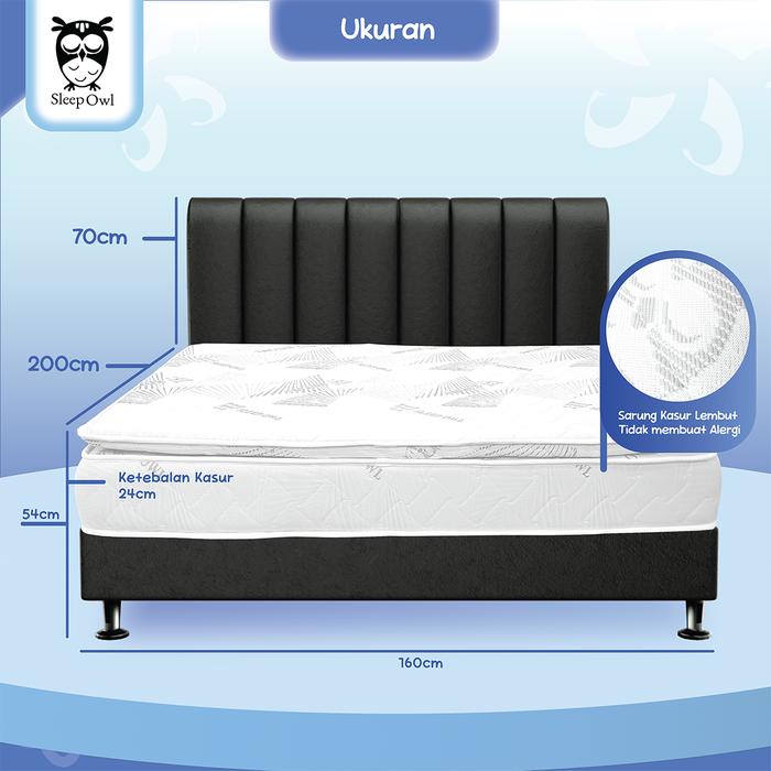 DIPAN DIVAN SANDARAN UNTUK SPRINGBED ATAU KASUR 160X200 -BOSTON - 160 - HITAM, TANPA KASUR