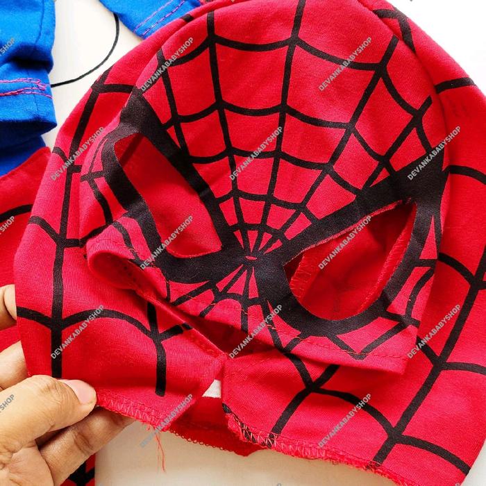 BAJU ANAK KOSTUM SPIDERMAN ADA TOPENG BAHAN KAIN KATUN UNTUK UMUR 1-10 TAHUN - BAJU+CELANA+TOPENGKAIN, 1-2TH MIN BB 10KG