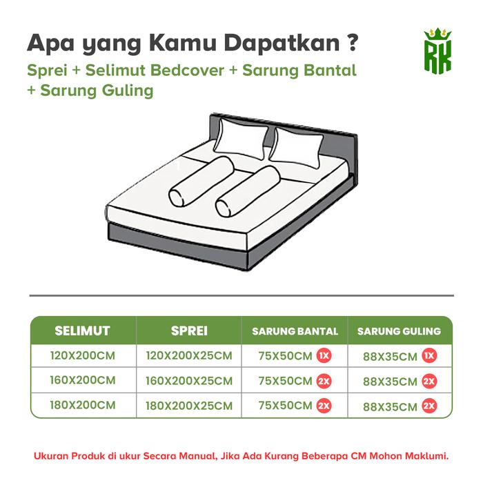 RAJA SET BEDCOVER SPREI MOTIF BARU SARUNG BANTAL GULING KAIN MICROTEX SET SPREI SELIMUT SARGUNTAL 12 - BSKTB201, 160X200CM