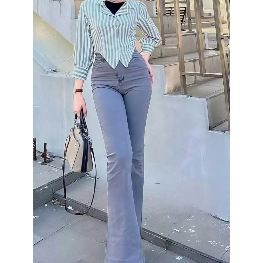 High Waist Jeans Streach Wanita Cutbray || Korean Style Straight Loose Cutbray Wanita Premium