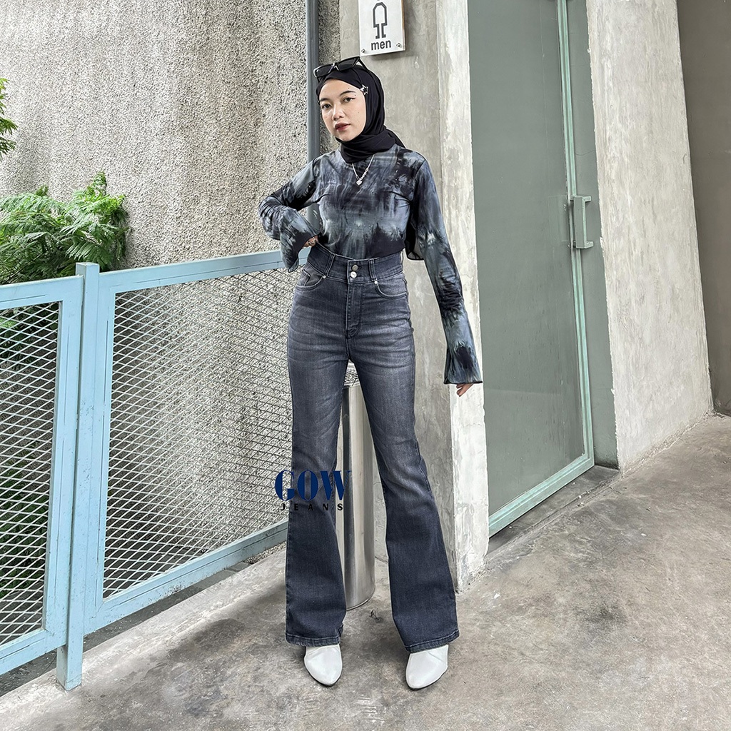GOWJEANS - Ultra Highwaist Cutbray Jeans Strech Grey Wash Slim-fitting Double Buttons