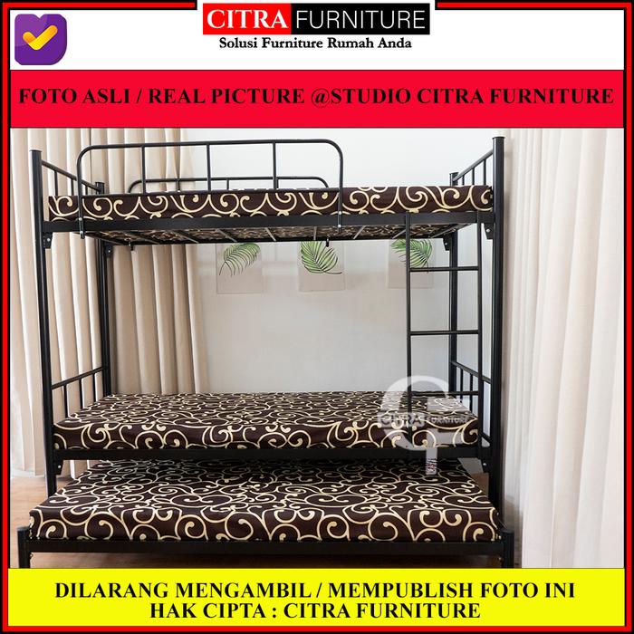 RANJANG TINGKAT BESI 3IN1|RANJANG SUSUN MINIMALIS|KASUR TINGKAT 90/90 - RJB 3IN1 PUTIH, HANYA RANJANG